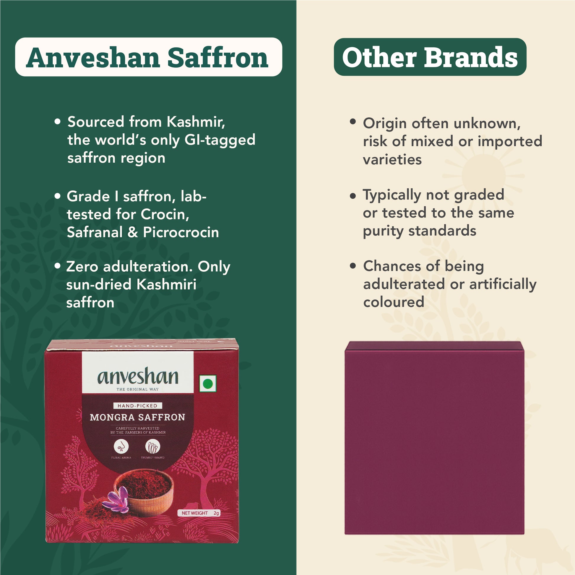- Because of its superior quality, stigma longer than any other type, flavour and deep red colour, Kashmiri Mongra Saffron is more sought-after than other varieties.
