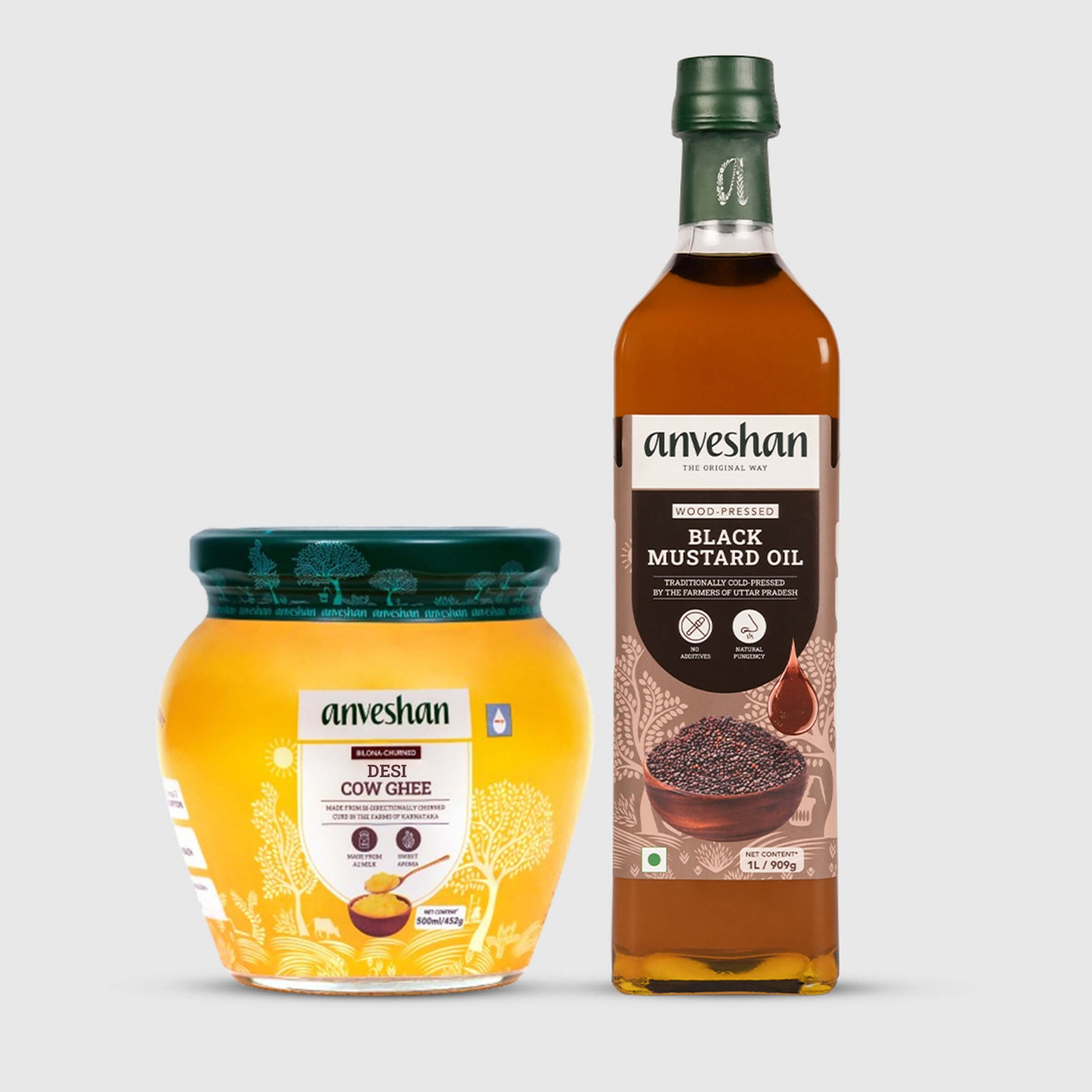 Bringing the best of nature to you. Enjoy our A2 ghee and wood pressed oil combo sourced directly from farmers of India. Enjoy the authentic aroma and flavour of traditionally processed food that are perfect to make your dishes delicious.