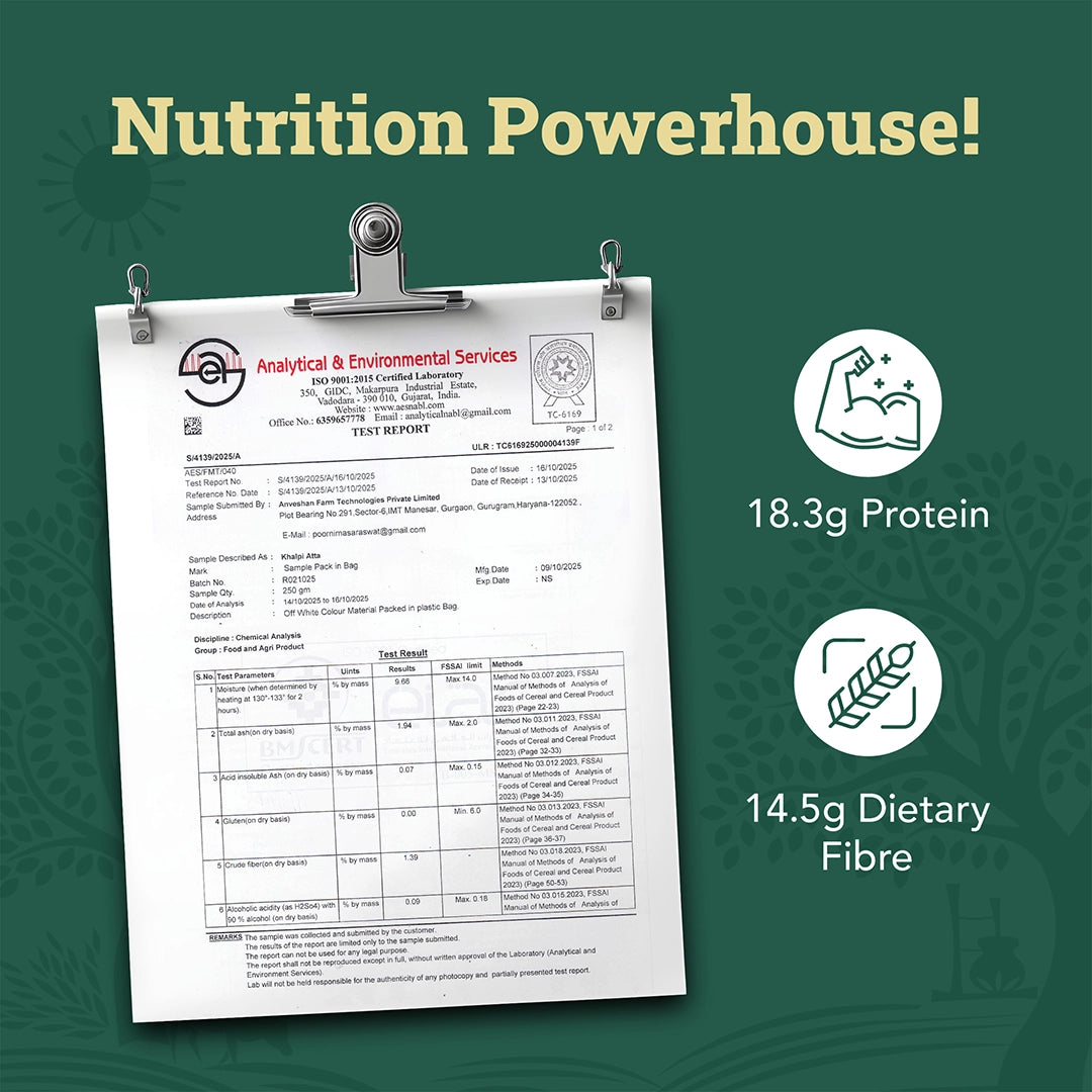 Tired of bloating after rotis? Meet Khapli, India’s oldest grain, now cold-pressed for your modern gut. Made from 100% whole Emmer wheat, it's naturally low in gluten, high in fiber, and gentle on digestion. Cold-ground to preserve nutrients, this atta is perfect for soft rotis, better blood sugar, and long-lasting energy. No maida. No mixing. No nonsense.
