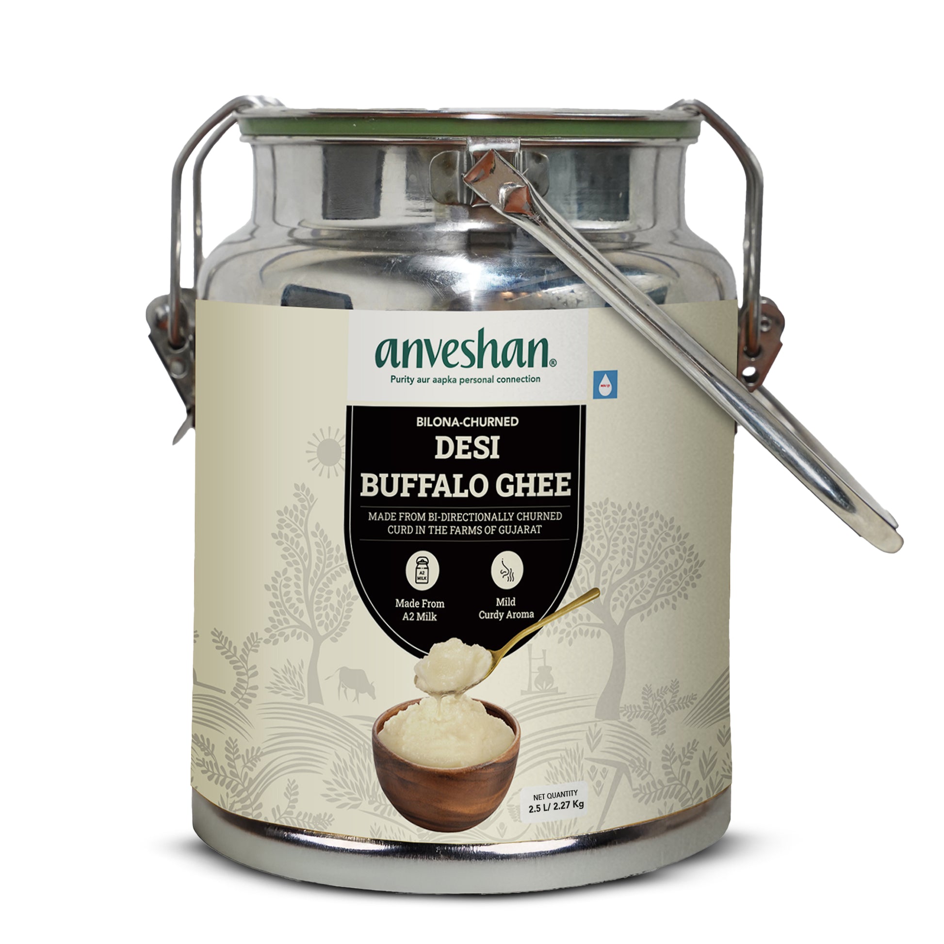 Anveshan A2 Desi Cow Ghee is made entirely from the milk extracted from desi cows. The indigenous cow gives around 2-3 litres of milk per day which is more nutritious than foreign breeds that produce more milk. The cows are neither forced nor injected with hormones to enhance milk production. Our ghee is bi-directionally bilona churned with a wooden churner. This is why our A2 cow ghee has a grainy ure thicker consistency tempting aroma superior flavour and is much healthier. Hence A2 Desi Cow Ghee is costlier and better than regular ghee.