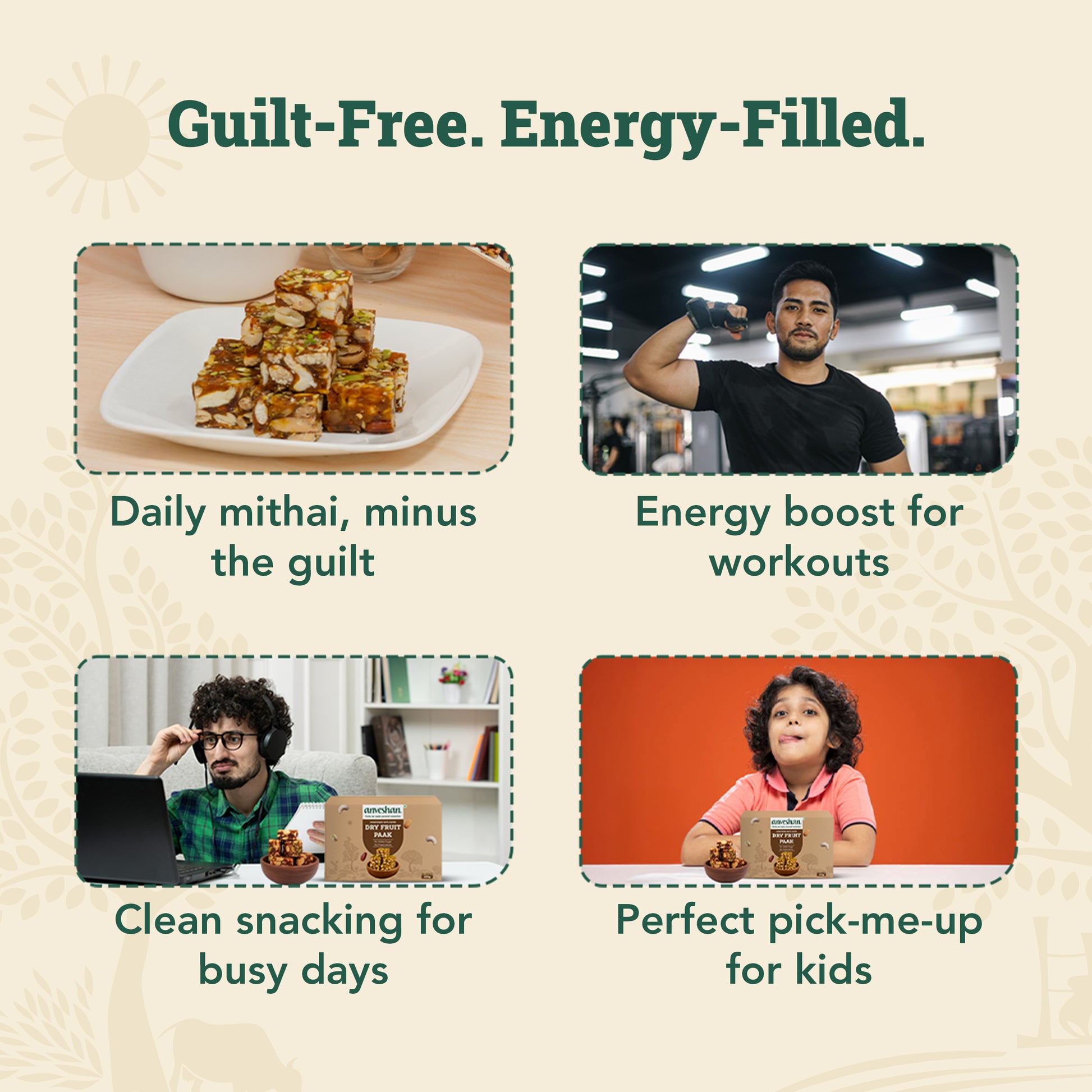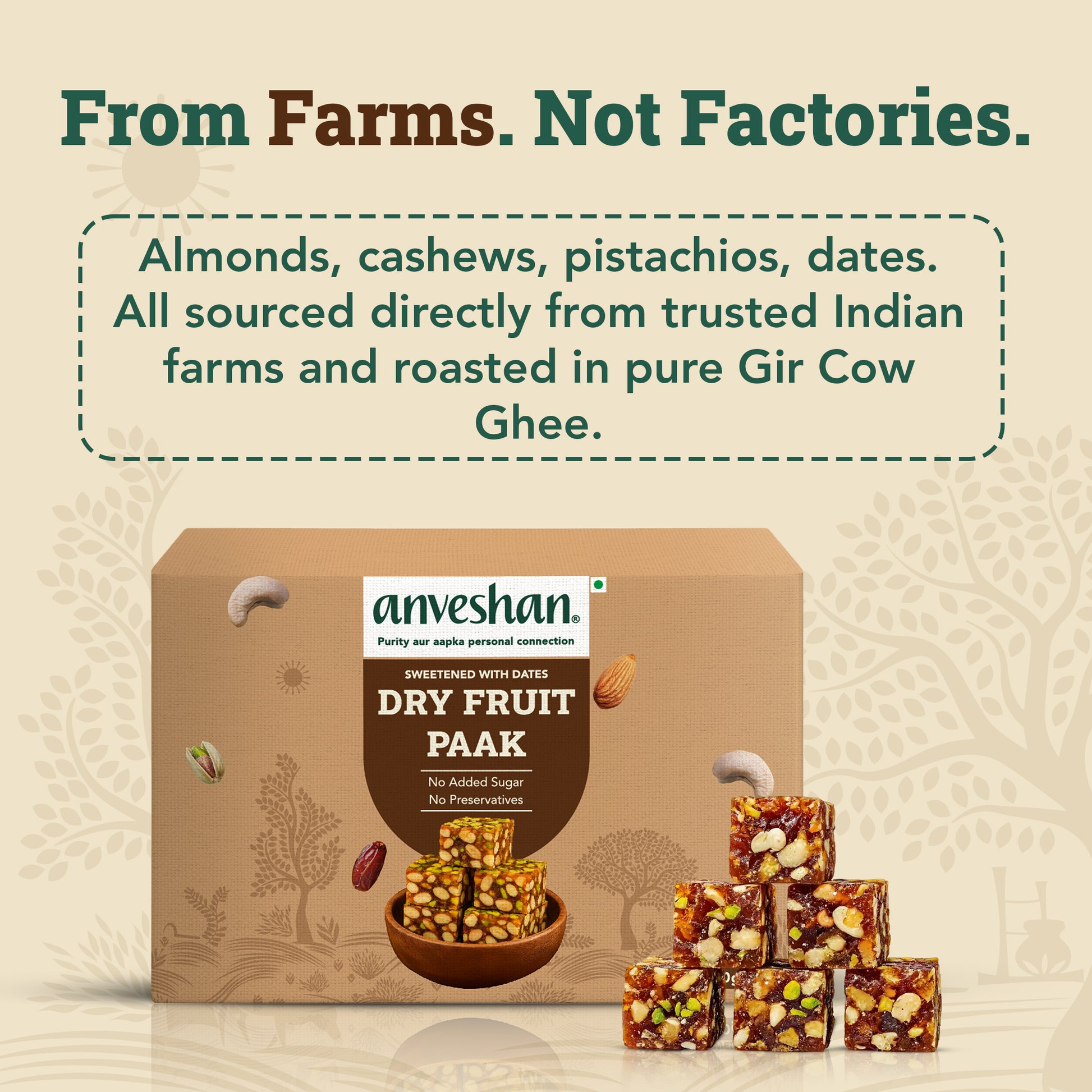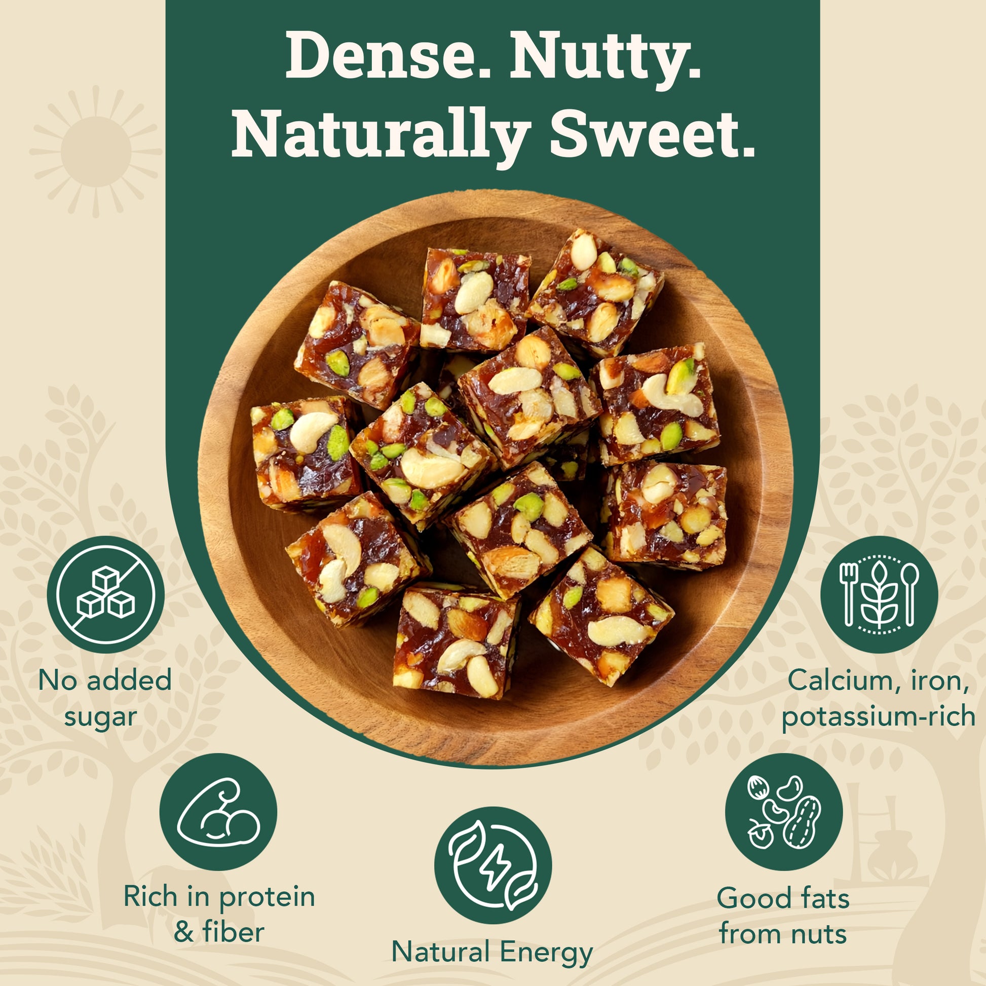 Guilt-Free 4 PM Snack. Nuts in A2 Gir Ghee. Sweetened with Dates. Rich in Calcium & Iron