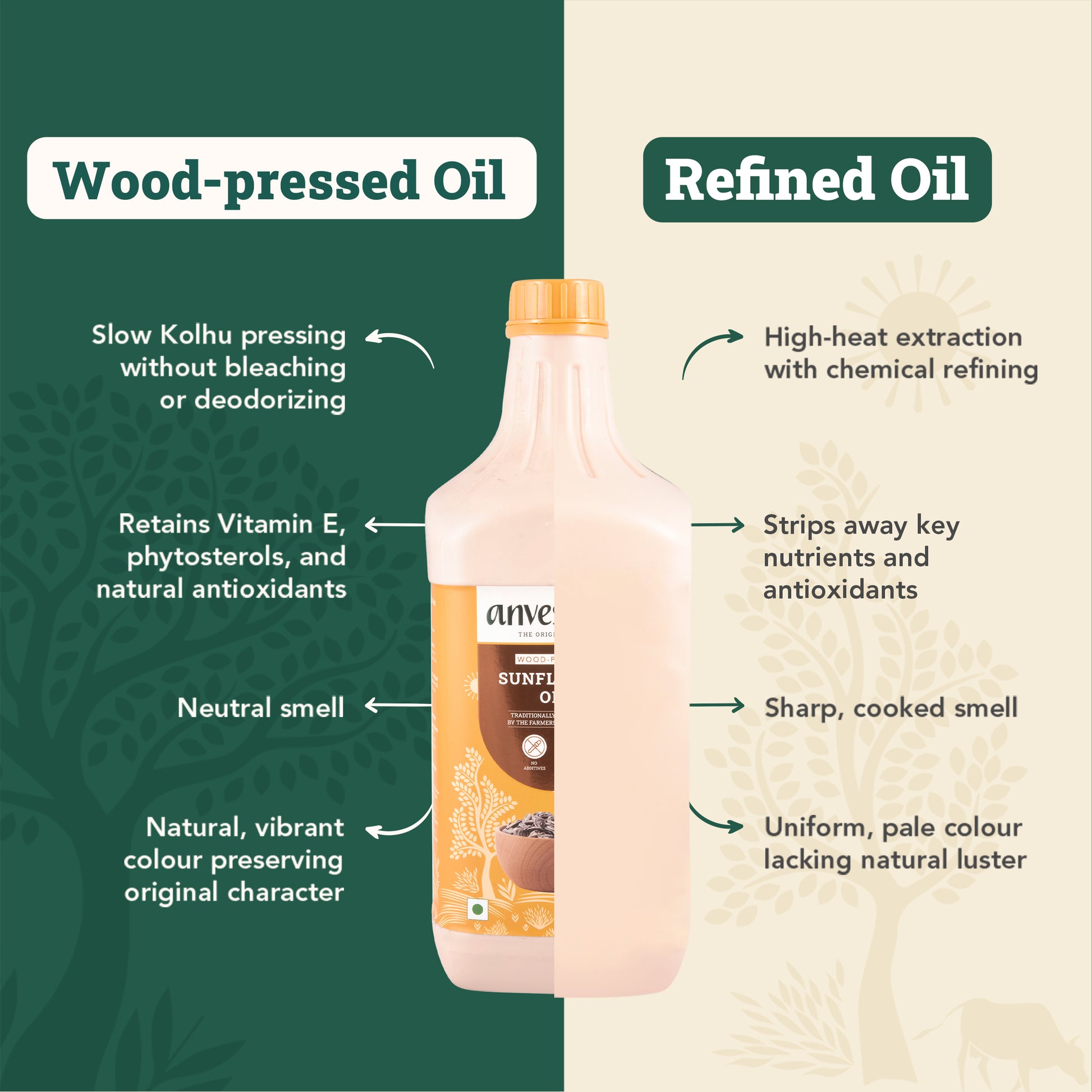 Finally found cooking oils which are not mixed or adulterated. This combo is perfect because I get strong groundnut for frying and light sunflower for daily. Must buy.