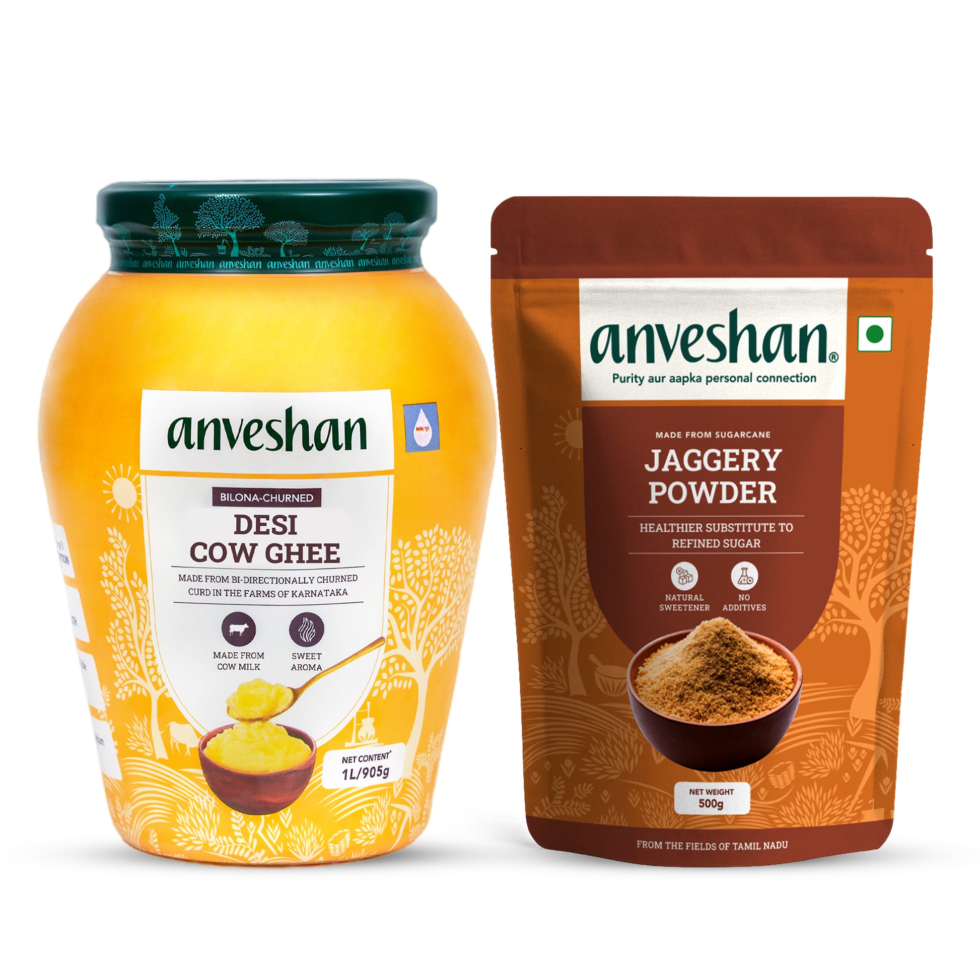 Ayurveda-approved nourishment. Gut-friendly Desi Cow ghee meets mineral-rich jaggery for daily cleansing and balance.