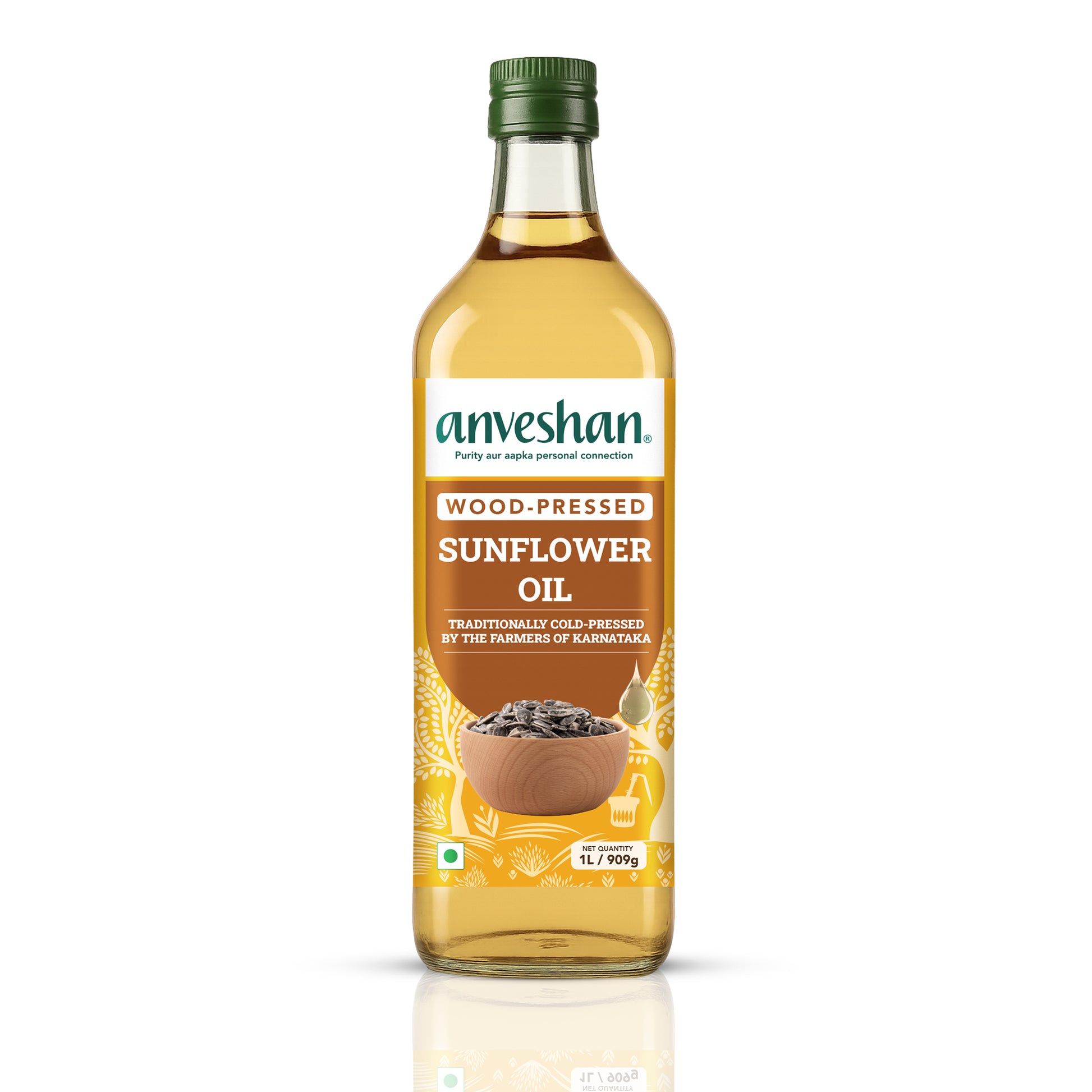 Anveshan offers premium quality oils cold-pressed in wooden Kolhu by crushing raw seeds/nuts and forcing the oil through pressure. Our oils are also “First pressed “ meaning that the seeds/nuts were crushed and pressed only once. As a result the oils are unrefined unbleached and most importantly natural. Oil extracted in this way retains its genuine flavour aroma antioxidants and nutrients. It does not alter the properties of the oil and makes them great for cooking.