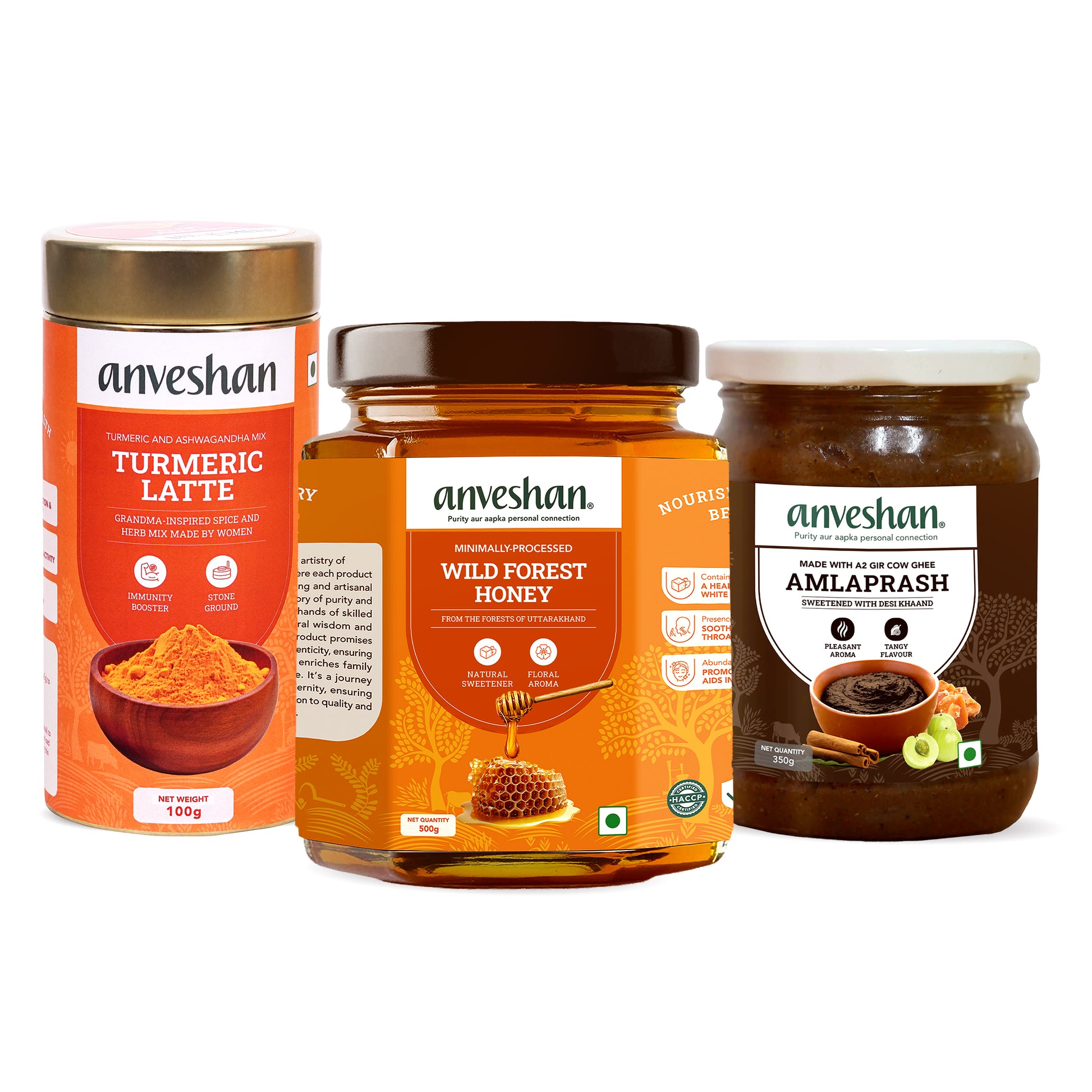 Amlaprash and wild forest honey help power your mornings, while turmeric latte with ashwagandha helps you slow down, restore, and unwind at night.