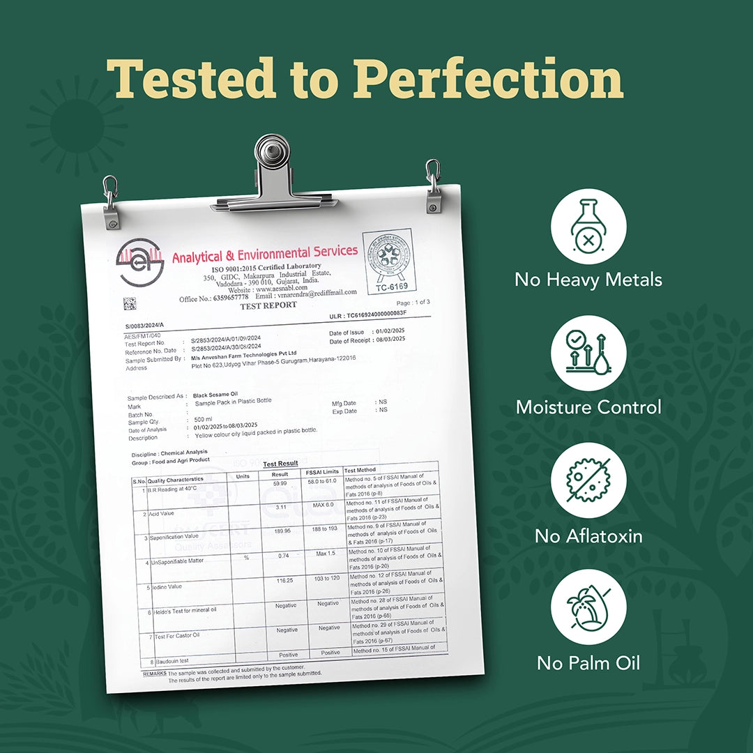 Black sesame oil contains MUFA & PUFA which have been linked to improved heart health.